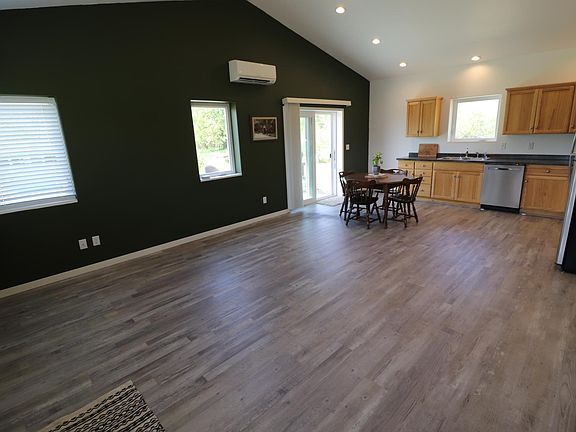 One level living. Open Floor Plan. 2 Bedroom 1 Bath Home Built in 2012 with Attached Garage, Maintenance Free Steel siding and Roof. Vinyl Windows, Infloor Heat, 2 Split System Units for Heat and AC. Affordable Living Close to town.