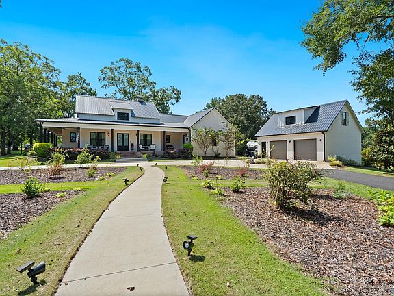 Looking for rare beauty, stunning views, and everything needed for a working farm or hunting retreat? This 4BR, 2.5BA brick home on 128± acres of fenced/cross-fenced pastures and hardwood forest offer it all, including marketable pine. With 3,264 sq ft, including a bonus room above a 2-car garage with half bath, the home features a spacious kitchen with island, double ovens, and electric cooktop (gas option), plus a huge pantry and laundry/storm shelter combo. The primary suite boasts a grand wet room and walk-in closet. Soaring 16/12/10-ft ceilings and a masonry fireplace add comfort. Outside, enjoy 1,866 sq ft of porch space, a saltwater pool with covered oasis, and a shooting house. Extras include a horse barn, hay barn, storage shed, chicken coop, kennel, and RV hookup. The land has a pond, trails, fruit trees, berries, and a year-round creek. Conveniently located between Birmingham, Auburn & Montgomery, minutes from Pursell Farms or Lay Lake—your private retreat awaits.