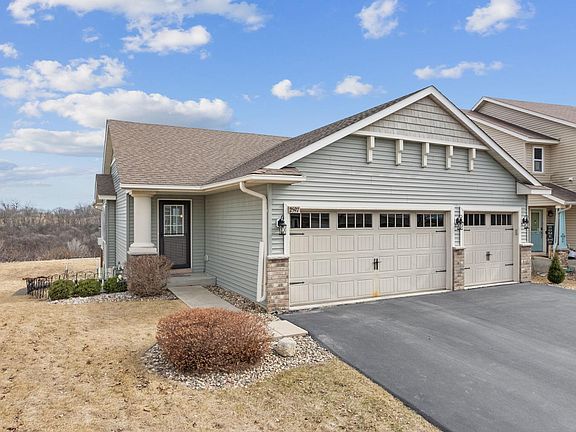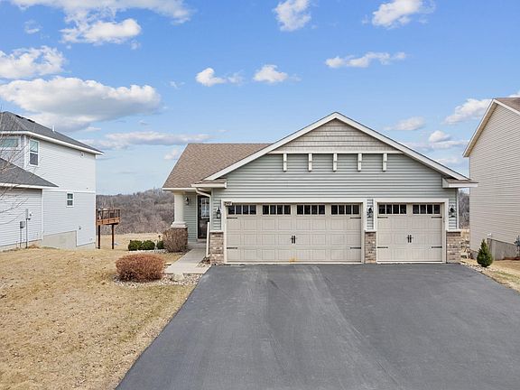 Don't miss this beautifully maintained 3-bedroom, 3-bathroom, 3-car garage home in Hastings. Built in 2012, this home offers a thoughtfully designed layout with modern features throughout.The main level features a convenient laundry room, a spacious primary suite with a walk-in closet and private bath, and an additional bedroom and full bathroom. The kitchen boasts stunning quartz countertops, a large island, and stainless steel appliances for a modern touch. A four-season porch, added in 2021, includes a heater and AC unit for year-round comfort and offers breathtaking bluff-top views.The lower level is ideal for multigenerational living, with a full kitchen and laundry, a large bedroom with ample closet space, an expansive living area, and a walkout basement. A brand-new A/C unit ensures efficiency and comfort. There is also plenty of storage throughout the home.This home is the perfect blend of comfort, functionality, and scenic beauty. Schedule your showing today!