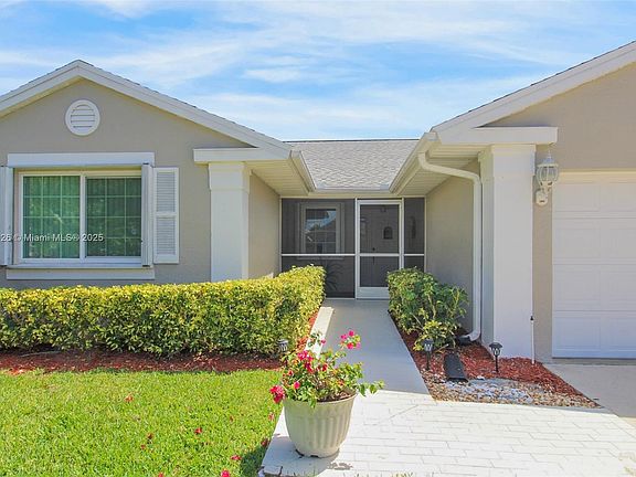 Beautiful 3/2 lakefront home on an oversized lot with stunning views. Enjoy the screened patio overlooking the lake or have coffee on private patio off the kitchen. Located in a gated community w/clubhouse, gym, resort style pool, BBQ area. HOA includes 24/7 guard gate, roaming security, cable, internet, alarm, lawn care, exterior painting every 7 years. This home has lots of improvements such as 3 impact doors, impact windows on 2 guest bedrooms & guest bath window in addition to accordion shutters throughout, roof 11 years old, new flooring throughout, newer water heater, hurricane proof garage door, reverse osmosis, new washer/dryer Close to Trpk, new shopping centers, restaurants. This beautiful neighborhood offers peaceful, scenic living with top tier amenities and sense of security.