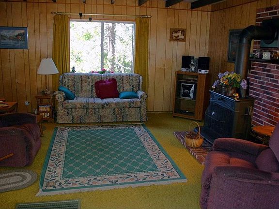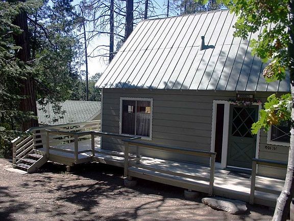 Level entry into this vintage cabin surrounded by trees and greenbelt on one side. Large 2-car detached garage, and plenty of parking. Large flat lot, and all within walking distance to Alpine Market, and the Historic Antler's Inn. Seller has recently installed a new lightweight roll-up garage door. Located in the Strawberry Flats, this is what mountain living is all about!