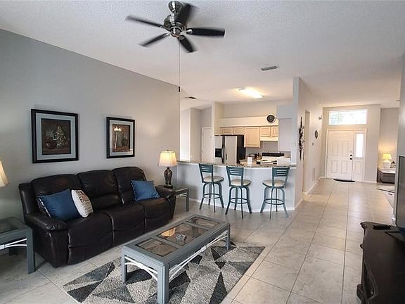 Beautiful, spacious, furnished home with a pool available for October. This property is equipped with all you need, just bring your suitcase and floaties for the pool to start enjoying some Florida sunshine! Lawn maintenance all included for one low price! The owner's suite has a king size bed, walk in closet, garden bathtub, separate shower, and it opens to the pool and patio. The other bedrooms have a queen bed and full over twin bunk bed, plus TVs in each room and plenty of closet space. There is a large 55" flat screen TV in the living room and comfy sectional couch that makes you feel right at home. With ample dining space, granite kitchen counters, stainless steel appliances, and a game room with pool table and basketball hoop, this is the best property. 10 minutes to Disney, outlets, grocery, shopping, restaurants, and the tourist district and only 1.5 hours to the beaches. This property is sure to exceed all your needs! Call today to book now!
