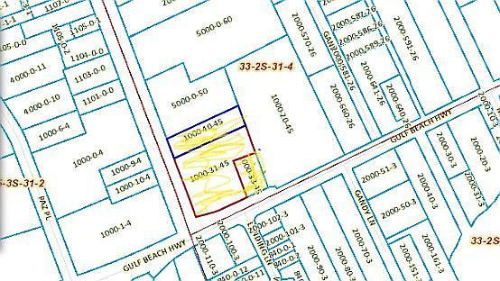 2.93 ACREAGE INCLUDES PROPERTY 2598 DOG TRACK RD. .76 OF AN ACRE PARCEL#332S311000040045 TOGETHER WITH 9150 GULF BCH HWY PARCEL#332S311000031045 AND 332S311000033045- THESE PROPERTIES TOGETHER OFFER ABOUT 390 FRONT RD FT. ON DOGTRACK RD AND ABOUT 307 FRONT RD FT ON GULF BEACH HWY. THIS IS A GREAT OPPORTUNITY TO OWN ACORNER LOT WITH LOTS OF EXPOSURE ON A HEAVY TRAFFIC AREA!! THIS PROPERTY IS ZONED HC/LI HeavyCommercial and Light Industrial Sec. 3-2.11 SOME STRUCTURES ON PROPERTY BUT BEING SOLD FOR LAND AND "AS IS". BUYER TO VERIFY ALL LOT MEASUREMENTS.