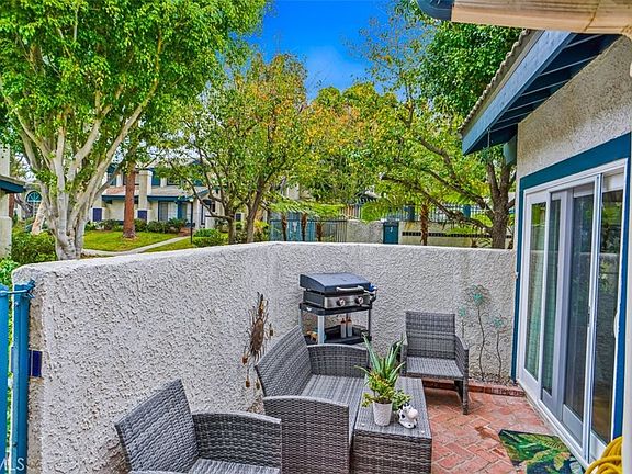 the newer plush carpet and vaulted ceilings accented with a fireplace with custom pin lights that accents the living room and enjoy cozy fires.The dining area is open to the kitchen which is nice for entertaining. The kitchen features newer stainless steel whirlpool built in appliances and many cabinets for your kitchenware. The downstairs bedroom has wood flooring and custom glass accents and a large open closet for easy access. The downstairs bathroom has recently been upgraded with beautiful features including flooring, vanity and shower /tub . The staircase takes you up to the private primary bedroom ensuite with bathroom with new flooring.The primary bedroom has vaulted ceilings and spacious room size. The primary bedroom has views of the beautiful mature trees in the green belt. Mirrored wardrobe closet doors accent the primary bathroom.The top of the stairs has a built in linen cabinet. The garage is direct access with wide 2 car garage. Laundry area in garage. The home is an end unit steps away from one of the 4 spas in the community.The green belt has many types of mature trees which brings the cool ocean breezes into the home. The HOA offers pool/ spa plus several spas located throughout the community and club house .The home features dual paned windows and newer flooring. Enjoy a BBQ in the patio after a swim in the pool or a day at the beach.The community has guest parking throughout the community. This is a wonderful home! A perfect beach getaway or coastal living home sweet home.