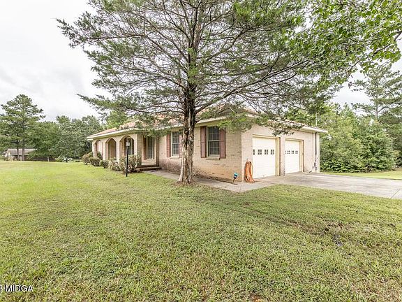 A fabulous starter, retirement, or income-producing 1-level 3-bed, 2-bath solid brick home on a nearly 3-acre corner lot! Beautiful brick archways welcome you to a spacious covered porch out front while a relaxing bench swing awaits you on the screened-in porch and grilling deck out back. Choose foyer-entry for access to the formal dining & living with large picture windows or enter the kitchen and breakfast nook via the attached 2-car garage and laundry/utility room. Unwind in a spacious family room featuring custom built-ins and a fabulous fireplace. Not ready to retreat to the primary bedroom with en suite bath? Tinker in the detached wired workshop or organize storage in your spacious walk-in attic. Just seconds from Lake Tobesofkee, dining, entertainment, schools, I-75 & 475. Schedule your private showing today!