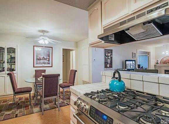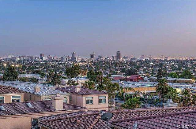Enjoy the gorgeous sunsets, Downtown Long Beach and city lights views from your oversized porch at the entrance to the condo. This stunning 'Hillside Pines' 2 bedroom, 2 bath condo is in the most secluded, sought after location at the very rear of this wonderful gated complex. This great condo enjoys both morning and afternoon sun. Currently the 2nd bedroom is being used as a den/study that opens from the living room and the hallway and features an adjacent full bathroom and closet. Close the doors and you instantly have a full, private 2nd bedroom. The living room is carpeted and the dining room, kitchen and hallway feature bamboo laminate floors. The living room is light and sunny and has a cozy fire place. The kitchen features high end stainless steel appliances, including a G.E. 5 burner stove and a Bosch dishwasher. There is a laundry closet that accommodates a stacked washer and dryer. The master bedroom is light and airy and features unique elegant wainescoting. There is a one car space in a private shared double garage and the best outdoor deeded 2nd parking space in the entire complex.There is a large jacuzzi located by the South parking lot.