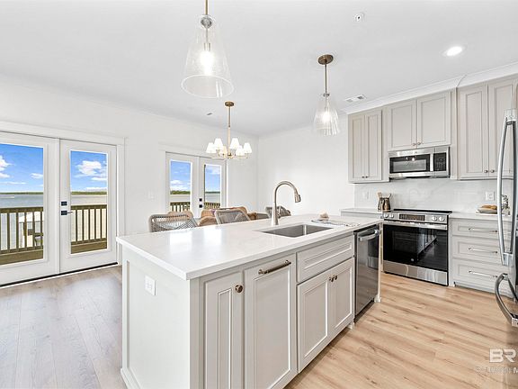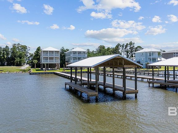Experience secluded bayfront living in the heart of Orange Beach. The beautiful Gold Fortified new construction home boasts stunning views of Wolf Bay from every room, with two expansive waterfront balconies. Inside, you will find high-end finishes throughout, including durable luxury vinyl plank flooring, sleek quartz countertops, and stainless-steel appliances in the kitchen. The master suite features a double vanity, walk-in tile shower, walk-in closet, and its own private balcony. Step outside onto your private boat dock with covered 35ft boat slip perfect for boating, fishing, or simply relaxing by the bay. This would be a great investment whether used for a primary residence or vacation retreat. Located right behind Doc’s Seafood and is just a golf cart ride away from all the city has to offer, including the white sandy beaches, local dining, and shops. Buyer to verify all information during due diligence. * Pre-recorded walkthrough video available upon request* *Furniture NOT to Convey with sale- unless specifically purchased outside of contract with stager*