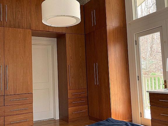 Mid-century contemporary with traditional flare including open plan eat-in kitchen with calacutta gold marble island and hardwood floors. Premium Rohl fixtures throughout. French door opens to new cedar deck. Stone Stairs and walkway lead to fenced perennial gardens. Butler’s pantry with built-in desk and pull out recycling and trash bins. High ceiling and shed dormer with lead coated copper standing seam roof, high efficiency awing windows, recessed and pendant lighting. Main living area and dining area with beadboard cathedral ceiling and exposed brick fire place looks out on wooded yard with mature oaks, maples, and tulip trees through a wall of Marvin Integrity Ultrex energy efficient casement windows and sliding doors. Sliding doors open to deck. High efficiency Rais fireplace insert. Built in custom bookcase. Second floor master bedroom with custom built-in walnut cabinets and marble topped credenza, hardwood floors, and paneled ceiling. French door opens onto a deck. Master bath has two sinks , high ceilings, recessed and low voltage pendant lighting, a shed dormer with a lead coated copper standing seem roof. Awning windows, closet, exhaust fan, carrara marble floor and wall tile. Oak wall paneling and premium Toto and Rohl fixtures. Two bedrooms on the second floor have custom built-in closets, desks and bookshelves, hardwood floors, low voltage recessed and pendant lighting and share a stone tiled bath with cherry vanity and stone countertop. High ceiling includes exhaust fan and skylight. Premium Rohl fixtures. First floor has in-law or au pair suite with large living area or playroom with kitchenette, bedroom with large built-in closets and exposed brick and a new porcelain tile bath with hardwood paneling, premium fixtures and a tempered glass shower enclosure. Recessed lighting throughout. A wall of sliding doors leads to a stone patio and deer-fenced perennial and vegetable gardens. Native stone gravel patio leads to a fire pit. Wood paneled mudroom with natural stone floor has a built-in closet and a French door that opens onto a cedar deck. Laundry room with wall cabinets, beadboard paneling and a natural stone tile floor. Foyer has beadboard paneling and travertine marble floor tiles and a closet and leads to a home office of den with beadboard paneling and hardwood flooring. First floor workshop or home gym. Secluded two acre lot has bluestone patio and walks, native stone walls, mature trees, fenced gardens, native stone gravel drive. Roofing, chimney pointing and flashing, gutters, decks, oil furnace, well pump, hot water heater, deck flashing, siding and all doors and windows have been replaced with Marvin Integrity Ultrex energy efficient casement windows and French and sliding doors. Painted fall of 2020. New oil furnace December 2020 with all new valves and zone controls. New stainless steel chimney liner connected to new boiler. New whole house water filtration system December 2020. Recent septic system, water, fireplace, and radon tests all passed. More photos to come...