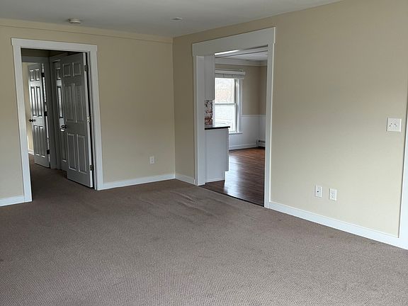 Walk to town location from nicely renovated multi-family property. Upper level unit with private entry from paved driveway with exterior lighting and security monitoring. Two parking spaces, one assigned. Spacious unit with lots of natural light and western views from dining area. Freshly painted interior. All windowS have cordless faux wood blinds installed. Clothes Washer/dryer in unit. NO PETS. NO SMOKING IN UNIT OR ON PREMISES. Landlord requires our rental application, Rent Spree credit/background report, one year lease, renter's liability insurance, 2 month security deposit unless 62 or older then 1 month only. Tenant responsible for snow removal from sidewalk to their unit entry area. Property location is on the bus line route. Available for immediate occupancy.
