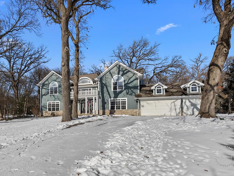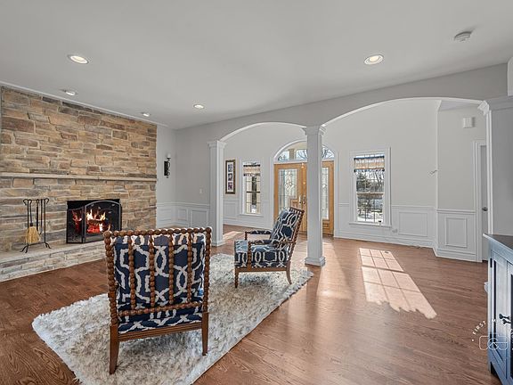 Gorgeous updated custom home located on almost an acre private estate wooded lot. Welcoming front porch. Two story foyer with double door entry, magnificent chandelier, atrium window, columns, and arched doorways. Beautiful gleaming hard wood floors through the first and second floor. Light and bright open floor plan. The quality and craftmanship you notice when you first step into this beautiful home that has extensive millwork, moldings & trim, and tray ceilings. Spectacular gourmet kitchen with large center island, white custom cabinets, granite counter tops, built -in refrigerator/freezer, double oven, five burner stove top, all appliances are Kitchen-aide stainless steel appliances, large walk-in pantry, recessed lighting, and under counter lighting. Enjoy the beautiful views of your wooded lot in your three season sun room. Spacious family room has coffered ceiling with white beams, floor to ceiling stone fireplace, built-in shelving and cabinets. Entertainment size living room with floor to ceiling stone fireplace, columns, and recessed lighting. Relax and enjoy eating in the beautiful dining room with tray ceiling, picture frame molding, and views of the wooded back yard. First floor office for those working from home. Large 5th bedroom ensuite/inlaw suite or nanny quarters which has private a full bath and plenty of closet space on the first floor also. Luxury Primary suite with vaulted ceiling, recessed lighting, and walk-in closet with custom shelving. Primary bath has custom multi head shower, whirlpool tub, and double vanity. Bedroom two is an ensuite with tray ceiling. The two additional bedrooms have a tray ceiling and/or vault ceiling. You will enjoy the convenience of the second floor laundry that has built-in white cabinets, granite counter top for folding laundry and sink. Finished basement has recreation room, work-out room, play room, and full bath. Three car garage with electric vehicle charging station. Enjoy your summers swimming in your own private heated inground pool. Spend your fall and winter enjoying your outdoor fireplace. Spend winters days in your own back yard with your own private sledding hill. Close to schools, Whalen Lake, parks, and shopping.