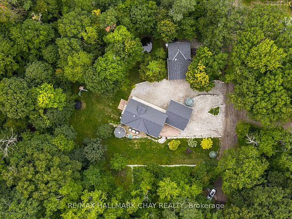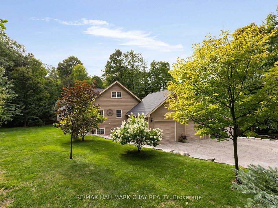 Welcome to 26 Eleventh St in Midland, situated in an incredible park-like setting with your own pond, surrounded by mature trees on over 2 acres. Minutes from historic shops and dining in downtown Midland, from the shore of Georgian Bay, and an abundance of all season trails for the nature enthusiasts. This residence offers architectural flare and unique finishes throughout - warmth of natural wood details, natural light via upgraded window package - attention to form and design at every turn. Large family? Home business? Extended family? Frequent guests? There is no shortage of functional living space with 6 bedrooms, 4 bathrooms, 2 kitchens, 2 laundry rooms, loft space above garage, above grade lower level, multiple entrances and an abundance of garage space and parking. Open concept floor plan - kitchen, living room, dining room. Custom kitchen features granite countertops, cooktop, double wall oven, food steamer, s/s appliances. Dining room large enough for hosting festive meals. Great room with soaring 15' tongue/groove ceilings, feature wall with gas fireplace and stone mantle. Main level walk out to beautiful deck, privacy offered by the mature tree canopy. Convenience of primary bedroom on the main level with stunning renovated 5pc ensuite - glass walled shower, double sink vanity, quartz countertop, heated floor. Look up - incredible loft space provides additional living room, bedrooms, bathroom - complete with upper level balcony. Full finished lower level (new lighting) with walk out/separate entrance - bedrooms, kitchen, laundry, rec room - set up perfectly for multigenerational family or guests looking for some private space. Above grade windows bathe this additional living space with natural light. Gather around the gas fireplace to warm up on cool evenings. Step outdoors to appreciate FIVE garage bays, an abundance of parking for cars, work vehicles, RVs and more. Additional 1 acre of beautiful, mature, forested property is included!