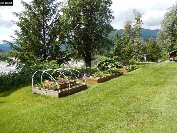 MOTIVATED SELLER-REDUCED Peacefully enjoy the view of the Klehini River and mountainous terrain as each season brings different birds and wildlife. This secluded house is location on a 5.7 acre piece of land which is situated in the Bald Eagle Preserve. This one story 2,400 square foot home has all the amenities needed for your home sweet home! Both bedrooms have on-suite private bathrooms plus there is a powder room for guests. The kitchen includes a walk in pantry/wine cellar. The woodstove is cozy and will keep the home warm in the winter. The screened sunroom is a perfect spot to start or end your day. The office could be used as a guest bedroom or library. There is a full attic to store all your worldly belongings or convert it to another bedroom & bathroom. Plus there is a 2 car detached garage with a woodshed & garden/tool shed conveniently located close to the house. Drilled freshwater well & private septic system. Excellent Western sun exposure for enjoying the beautifully landscaped yard and well maintained, manicured lawn. Established raised garden boxes provide for good homegrown meals. It has AMAZING views of the mountains, glaciers & sunsets that it is like having your own Alaskan TV channel all to yourself. You will see eagles soar above your house or bears fish in the river for salmon in the fall. The sunsets are fabulous as you are perched above the river about the same elevation as eagles fly and your view encompasses over 30 miles into Canada. It is a simple cedar sided house on an extraordinary lot with views that will never get old. Its just 35 minutes from downtown Haines but worlds away!