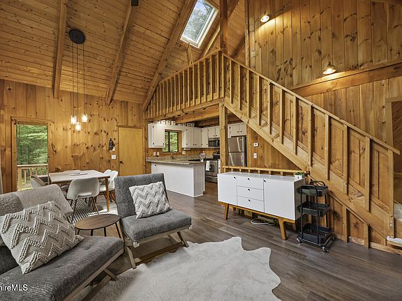 - Description: Open plan w/ dining area & kitchen, cathedral ceiling