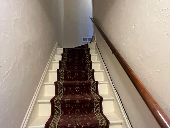 1 bath on first floor with 3 rooms upstairs - 2 bedrooms with a smaller 3rd room for office or as large closet