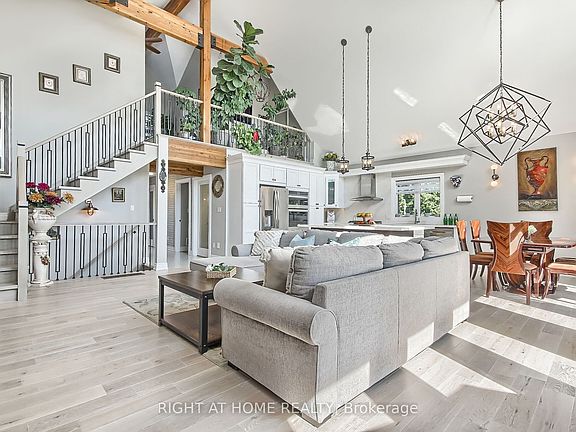 Escape to the waterfront in Kawartha Lakes! This stunning 4-season custom home offers 2,700+ sq ft of beautifully designed living space on the peaceful shores of Lake Scugog, part of the scenic Trent-Severn Waterway. Perfect for families, retirees, investors, or anyone dreaming of a relaxed lakeside lifestyle with year-round recreation just outside your door. From the moment you enter, you're greeted by soaring vaulted ceilings, expansive floor-to-ceiling windows, and engineered hardwood flooring that flows throughout the main living areas. The open-concept great room impresses with exposed beams, a cozy propane fireplace, and a walkout to a spacious cedar deck overlooking the water, ideal for entertaining or quiet morning coffee. The chef-inspired kitchen blends style and function with granite countertops, a large island, built-in appliances, a beverage & wine fridge, designer lighting, and custom wainscoting. Every detail has been thoughtfully curated for comfort and elegance. The main level includes two large bedrooms with double closets and ceiling fans, while the lofted primary suite offers a private sanctuary with panoramic lake views, vaulted ceilings, a sitting area, and a luxurious ensuite with a glass shower and soaker tub. Downstairs, the walkout basement is fully finished and perfect for guests or multi-generational living. It features a spacious rec room with a bold 3D mural accent wall, a kitchenette with island, crown moulding, pot lights, a 4th bedroom, a 3-pc bath, and direct access to the stone patio and landscaped lakeside yard. Located just a short walk to Sand Bar Beach and public boat launch, and only minutes to Port Perry and Lindsay for shopping, restaurants, and hospitals. Enjoy boating, swimming, skating, snowmobiling, and fishing right at your doorstep. Only 1.5 hours to Toronto!A rare blend of luxury, comfort, and natural beauty. Don't miss this one!