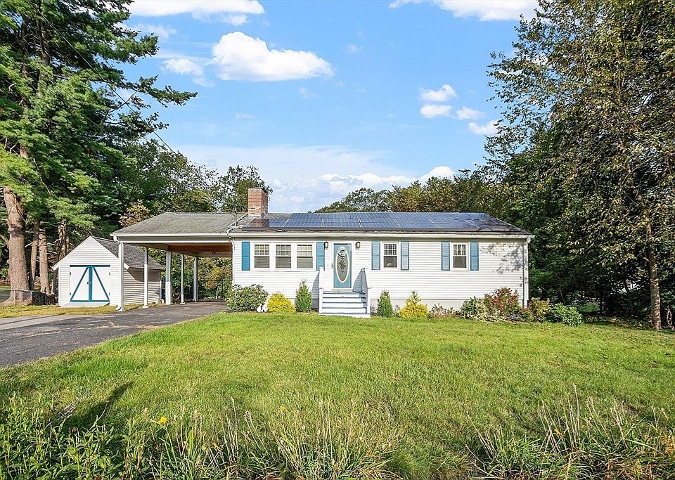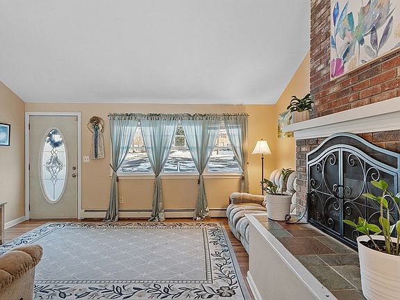 Discover the ease of single-level living in this beautifully updated 3-bedroom, 2-bathroom ranch, complete with a finished walkout basement for added versatility. The inviting living room features a central fireplace, perfect for cozy evenings, while the remodeled kitchen boasts stainless steel appliances, granite countertops, a movable center island, and a slider leading to an expansive 23x12 back deck—ideal for outdoor entertaining. The main level includes three comfortable bedrooms and a stylishly renovated full bath. The finished walkout basement offers a spacious family or game room, an additional full bath, laundry area and ample storage space. Additional highlights include energy-saving solar panels, a newer heating system, oil tank, and hot water tank. This home combines comfort, convenience, and modern updates—schedule your showing today!