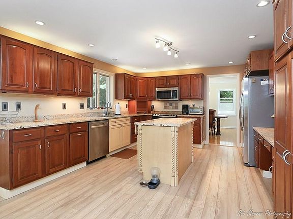 - Kit Dscrp: Countertops - Stone/Granite/Solid, Deck - Exterior, Kitchen Island, Recessed Lighting, Flooring - Laminate, Remodeled