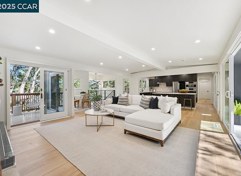 Welcome to 26 Berkeley Avenue, a thoughtfully renovated 4-bedroom, 3-bathroom home offering 2,261 square feet of move-in ready living space, plus an additional 200 square feet of storage. This freshly reimagined home features an open-concept floor plan that maximizes natural light and creates an inviting treehouse feel among the oak-studded Orinda hills. The newly installed back deck provides a pleasant spot for outdoor dining and relaxation, with easy access from the main living areas. The remodeled kitchen anchors the home's open layout, featuring a new island that resulted from removing walls to improve flow between spaces. Updates include new countertops, cabinetry with soft-close drawers, and Bosch appliances, everything you need for comfortable daily living and entertaining friends and family. Recent improvements throughout include new roof and lighting fixtures, fresh flooring throughout, and three remodeled bathrooms with new tiles and vanities. Vaulted ceilings enhance the sense of space while large windows frame views of the surrounding oaks. Located in Orinda's peaceful hills, this turnkey home offers convenient access to daily amenities and award-winning Orinda schools and a nearby bus stop for Orinda Intermediate Schools.
