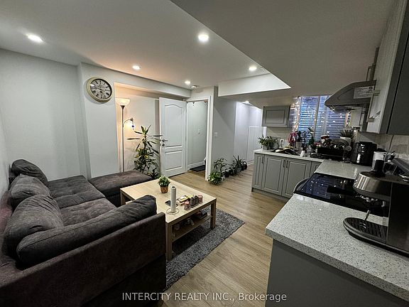 This legal basement apartment features 2 bedrooms and 1 full washroom, offering comfortable and functional living. Enjoy a bright, open living room with pot lights and ample natural light throughout. The unit includes 1 parking spot on the driveway for added convenience. Located just steps away from public schools, transit, grocery stores, plazas, and major highways, this home provides easy access to everything you need. Separate Entrance. En-suite Laundry.