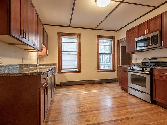Brand new kitchen and bath ready for move-in. Spacious apartment spread over two floors with great closet space, hardwood floors, free laundry (exclusive) and a great location! Private front porch, a huge pantry and original details including beautiful stained glass window. Bring your dog or cat, Pet friendly! Lease length to August 2021 or longer. This updated and large apartment offers an ideal location with an affordable price and new finishes.