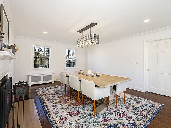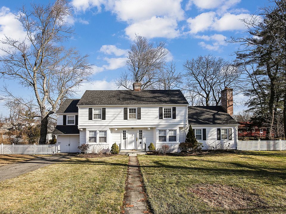 Fully updated Center Hall Colonial on park-like .34 acres. Over 2,500 square feet of living space including large living room with wood burning fireplace, leading to a family room with fireplace and door to covered porch and completely fenced-in back yard great for children and dogs. This home features a fabulous new eat-in kitchen with stainless steel appliances, a formal dining room, private office/or workout room and powder room. Upstairs to Master bedroom with brand new en suite master bath and custom-built walk-in closet plus two additional closets for extra storage. There are also two additional bedrooms and newly installed hall bath with tub. Other improvements incl. refinished floors, freshly painted inside and out, completely new roof with gutters and leaders, converted home from above ground oil tank to gas, laundry room w/ new appliances and second fridge in heated garage, custom radiator covers, recessed lighting and crown/baseboard molding.