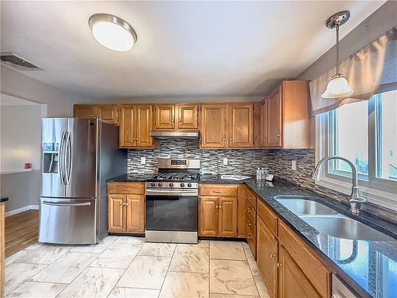 Discover the beauty of this spacious and oversized raised ranch, offering 3-5 bedrooms and 2 full baths. This home also features Hardwoods, central air, granite countertops in the bathrooms, and a kitchen with plenty of cabinet space, beautiful granite countertops and stainless appliances. Open the slider doors off the kitchen to access a welcoming deck, creating a seamless indoor-outdoor experience. Recently painted, with a new roof and upgraded 200-amp electrical service, this home combines modern updates with practicality. As you step into the fenced-in yard, you'll find an ideal setting for entertaining with a pool, recently added hot tub and patio. Enjoy the added convenience of a central location, providing easy access to shopping, dining, parks, and more. Don't miss the opportunity to make this recently refreshed raised ranch your home! Call today for your private showing!
