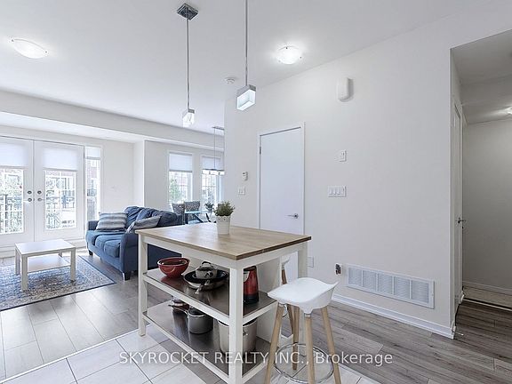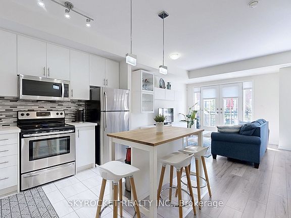 A Place to Call Home in the Heart of Woodbridge. This modern 2-bedroom, 2-bathroom multi-level Condo townhome combines style with everyday practicality. The main floor features a separate dining area, a spacious living room with custom built-in cabinets, and a sleek kitchen with quartz counters, stainless steel appliances, and a central island. From here, step out to your private balcony with a natural gas BBQ hookup, perfect for relaxed evenings or hosting friends overlooking the courtyard. Upstairs, the large primary bedroom includes a custom closet organizer, while the second bedroom offers its own Juliet balcony. Everyday comforts include in-unit laundry, a tankless water heater, central A/C, one parking space, and a storage locker, plus the added convenience of quick staircase access to the parking garage. Whether you're buying your first home or seeking a smart investment, this condo townhome offers comfort, convenience, and strong rental potential just steps to schools, shops, restaurants, parks, transit, and major highways. A perfect blend of lifestyle and location, ready to welcome its next owner.