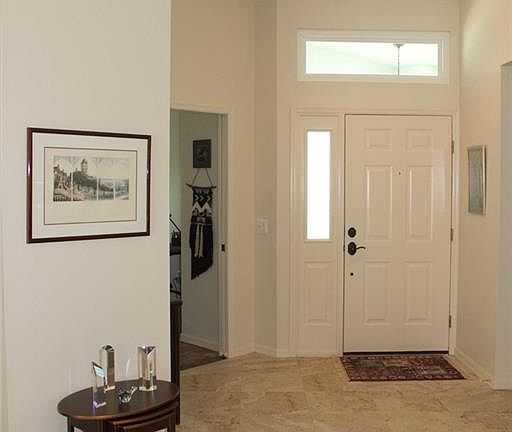Custom highly upgraded Hammocks villa with over 2100 sq. ft. living area & greenbelt in back and on one side. Elegant 20" travertine tile in main rooms including Fl room, all on one level. Glazed 42" new cabinetry w/soft close and full extension drawers. Gas cooktop, granite, under cabinet lighting and newer stainless steel high end appliances. All new windows are dual paned, high impact with lifetime warranty. Fresh paint in & out and new carpet. Pavered sidewalk and patio. Customized Master closet. All new lighting plus added insulation, roof new 2014;HVAC replaced 2009. You will love this villa! All the work has been done!