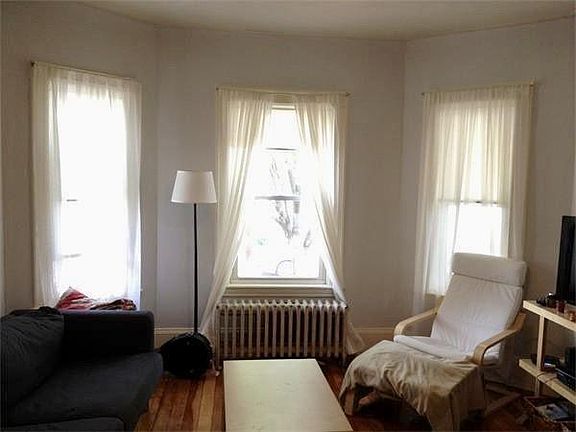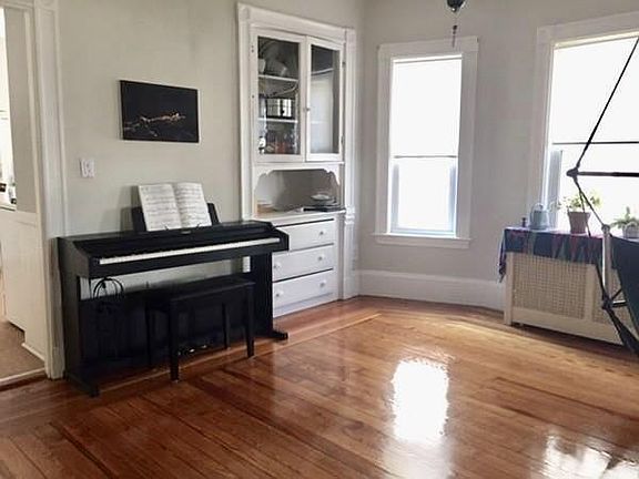 Great convenient location on a quiet, tree-lined side street, close to Davis Sq.,Porter Sq.and Cambridge. Sunny first floor 2 bedroom unit in a wonderful 2 family home. Front living room, separate dining room with built-ins, large eat-in kitchen with separate pantry with lots of storage, washer and dryer in unit. There are beautiful hardwood floors, high ceilings, and large windows throughout. Also front and back porches and access to a gorgeous shared stone patio and grass area. $25/adult charge for rental application paid by tenant.