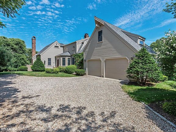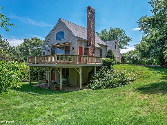 Unique Gambrel in Bodfish Farms.Spacious 3 bedroom 3.5 bath home includes a finished walk out basement adding 660 sq.ft.plus an additional 1/2 bath.Open design on the first level includes a large living room with a cathedral/beamed ceiling opening to a generous dining room.The kitchen has a charming breakfast nook with plenty of room for a sitting area and an adorable wet bar.There is a first floor bedroom now used as an office providing true first floor living with a full bath and laundry completing the first floor.The second floor has a master suite,a third bedroom and third bath as well as a large room perfect for a yoga/art/or craft studio or overflow guests. There is a new roof,central air, alarm system,large deck and there's even a view of Sandy Neck from the upstairs bedroom. An interesting home in a great neighborhood.