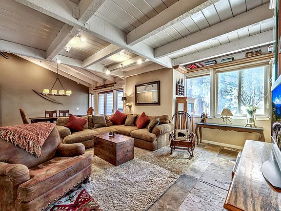 Open House canceled Fri 2/9 & Sat 2/10 Stunning Lake Village townhome! Rare huge 2 car garage with storage inside. 3 bedroom plus den, 2 baths with room for all. The large log posts throughout the home add the touch of mountain charm. Cozy gas fireplace for winter and air conditioned for summer! Fully furnished with Bunk room too! Interior stairs to garage, laundry area inside! Upstairs a cozy den with built-in library, as well as a sleep loft to accommodate extra guests., ......The two additional bedrooms and large bath with walk-in shower and skylight provide ample space and comfort, while the main bedroom and bath on the main level offer convenience and privacy. Bedrooms include log bunks, queen beds, dressers and seating. Kitchen has every plate, bowl and utensil ready for your first stay! This home truly has it all!!! Location, Location, Location! Lake Village is sought as one of the premier communities in the Lake Tahoe basin. Situated amidst USFS land you'll have endless opportunities to explore miles of hiking and biking trails. You'll also be conveniently close to Lake Tahoe itself! With beaches, shops, coffee house, restaurants, post office and grocery store also close by. Just a little over a mile away, you'll find Edgewood Golf, Heavenly Gondola, Heavenly Village shops and dining, and the casino corridor of South Shore. The location truly offers the best of both worlds - outdoor adventure and easy access to amenities. As part of the Lake Village HOA, you'll also have access to an array of fantastic amenities.. Enjoy a summer swim in the pool, relax in the sauna or hot tub, gather with friends and neighbors at the club house or fire pit, have a barbecue or picnic in the designated areas, play tennis or get into the pickle ball craze at the multiple courts, let the kids have fun in the play area, and benefit from the convenient services such as snow removal, garbage pick up, and on-site management. Come and experience for yourself why Lake Village is the perfect place to enjoy the magnificent lake life at Tahoe!