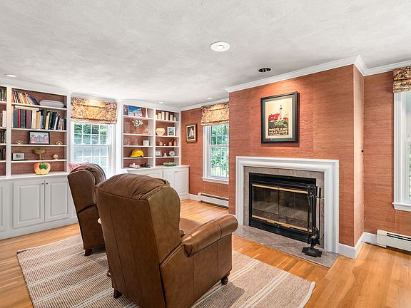 Welcome to this exquisitely maintained Colonial in Dover, offering expansive living space set on a serene, private 1-acre lot. The first floor features a sunlit kitchen with modern appliances, a spacious office, elegant formal dining and living rooms, and a generous three-season porch with direct access to the beautifully fenced backyard patio and yard that abuts conservation land. Rich hardwood floors throughout, three fireplaces, and energy-efficient solar panels enhance the home's appeal. The 2nd floor features a luxurious primary en-suite accompanied by three additional bedrooms. A finished basement provides flexible space ideal for a home gym, playroom, or extra living area. Residents enjoy access to the acclaimed Dover-Sherborn school district, nearby hiking and biking trails, and convenient commuter routes perfectly blending comfort, sustainability, and natural beauty.