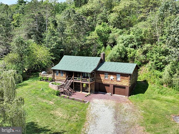 Large log homeBabbling brookAbundant wildlifeNew roofOpen floor planIntegral two car garageElevated front porch