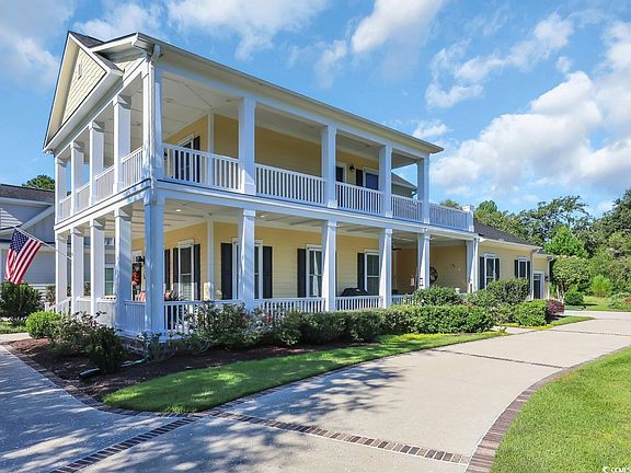 Welcome to Litchfield Plantation, a gated Lowcountry community where a brick and wrought-iron entrance opens onto a live oak-lined avenue. Tucked on a quiet cul-de-sac and surrounded by mature, garden-like landscaping, this home radiates timeless Southern charm. The main floor blends living, dining, and kitchen areas into a warm, open space anchored by a cozy fireplace and rich hardwood floors. From the kitchen, step onto a large wraparound porch with a sitting area, perfect for morning coffee, alfresco dining, or evenings enjoying coastal breezes. A serene primary suite with a spa-like bath, a half bath, large laundry, and an oversized two-car garage complete the main level. Upstairs, three bedrooms or two plus a flexible bonus room share a full bath with a large tile shower, and each bedroom opens to the wraparound porch, offering peaceful retreats. Residents enjoy a pool tucked among historic rice fields and a private Pawleys Island beach house, blending Lowcountry serenity with coastal living. Embrace Lowcountry living and make this beautiful home your own.