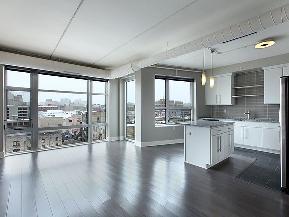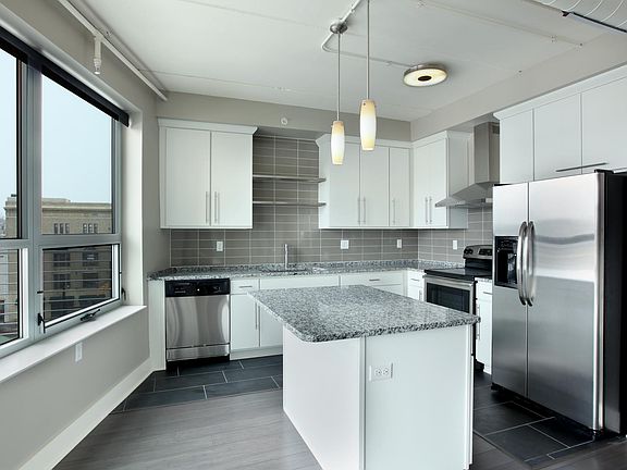 Modern finishesLight granite countertopsLarge windowsOpen atmosphereWhite kitchen cabinetsDesigner kitchensBreath taking urban views