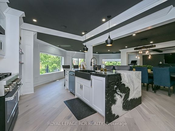 Waltz into your dream home! Nestled in the North end of Brampton (Stonegate) this fully renovated 2-story home is a masterclass in contemporary comfort & timeless elegance. Situated on an ultra-private ravine lot w/no neighbors behind & views of nothing but nature & a beautiful pond, this home & property is the perfect blend of serenity, style & functionality. Offering a turn-key lifestyle. Surrounded by lush foliage, perennial/mature trees that provide natural shade, the lg backyard cant be beat. Enjoy a cozy evening on the 2-tier composite deck or soak in the hot tub. As you step through the new front door, you're immediately greeted by a beautiful open staircase w/iron railings & a view right to the back of the house. To the right is a functional office w/built-in cabinet, fireplace, coffered ceiling & accent wall. To the left is a tiled mudroom, w/heated floors & a 2 pc bath. New engineered hdwd floors run throughout the main floor & upper level. Every inch of this home has high end finishes. Chefs dream kitchen boasts oversized island w/quartz counters & sink, subway tile backsplash, top of the line Kitchen-aid SS appliances gas range & b/I oven/microwave combo for all your cooking needs. Sep pantry area. Eat-in dining rm w/ample space for entertaining & attaches to the sunroom area w/3 lg windows & w/o to deck. Family rm is a perfect place to watch TV & the coffered ceiling is next to none. Upstairs, you'll find 4 generously sized bdrms, each offering ample closet space, new flooring/crown molding/custom trim work. Renovated 4 pc main bath, updated w/new vanity, quartz countertop, tub/shower combo. Renovated 3 pc main bath w/new vanity, quartz countertop, & laundry. Primary bdrm w/dream closet, w/island in the middle, custom built-ins & renovated ensuite w/dbl sinks, quartz counters, modern hardware/fixtures & w/i glass shower & soaker tub. Lower-level features 2nd wood fireplace, lg windows & gym rm, 3 pc bath with w/i shower. Seeing it believing!