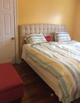 apartment is spacious and sunny, hardwood floors, eat-in kitchen, pantry, plenty of windows, coin laundry in basement, large deck, driveway with parking
