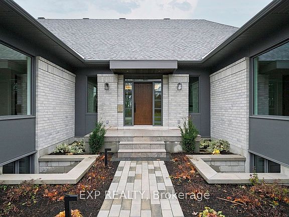 Newly built bungalow by award-winning Hobin Architecture & RND Construction (Custom Builder of the Year) on a 100 x 150 ft lot facing Quarry Park. With over 4,100 sq. ft. of finished space, this 6-bed, 5.5-bath home is designed for multi-generational living, featuring an open-concept layout, 10-ft vaulted ceilings, expansive windows, and a chefs kitchen with a walk-in pantry, BBQ deck, and central patio. The bright walkout lower level with 2 bedrooms and oversized windows offers potential for a secondary unit. Includes $200K in upgrades of YOUR choice, customize basement finishes and backyard landscaping. Net-zero ready with high-efficiency HVAC, radiant heating, and smart home automation. Prime location across from Quarry Park, near NRC, CSIS, Montfort Hospital, minutes to the LRT, and Colonel By High School (IB program). Modern living 15 minutes from downtown Ottawa!