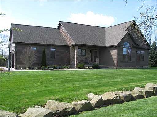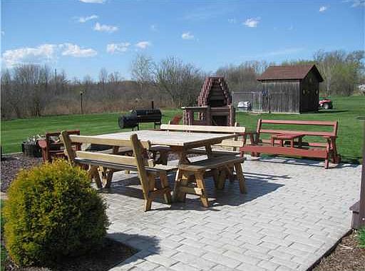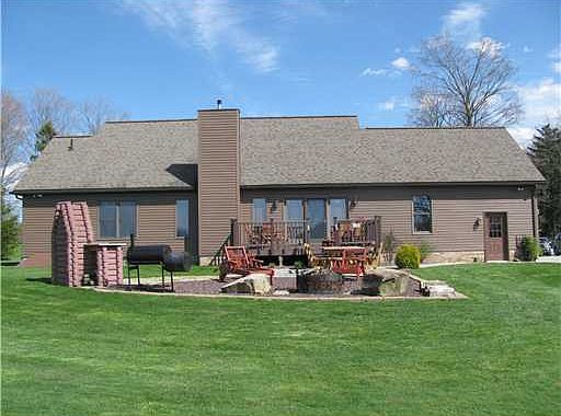 Great room, kitchen island w/cathedral wood ceiling, tiled floor, breakfast bar, Craftmaid cabinets, oak trim. Solid wood doors. Custom blinds & cathedral ceilings throughout. Newer rear deck & patio. Included in sale: firepit for cookouts. Country, yet so close to town. Attached garage easily converted to Fam. Rm., Shed and additional 2 car garage.