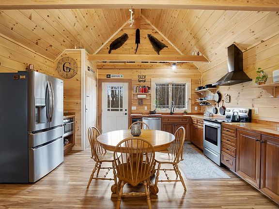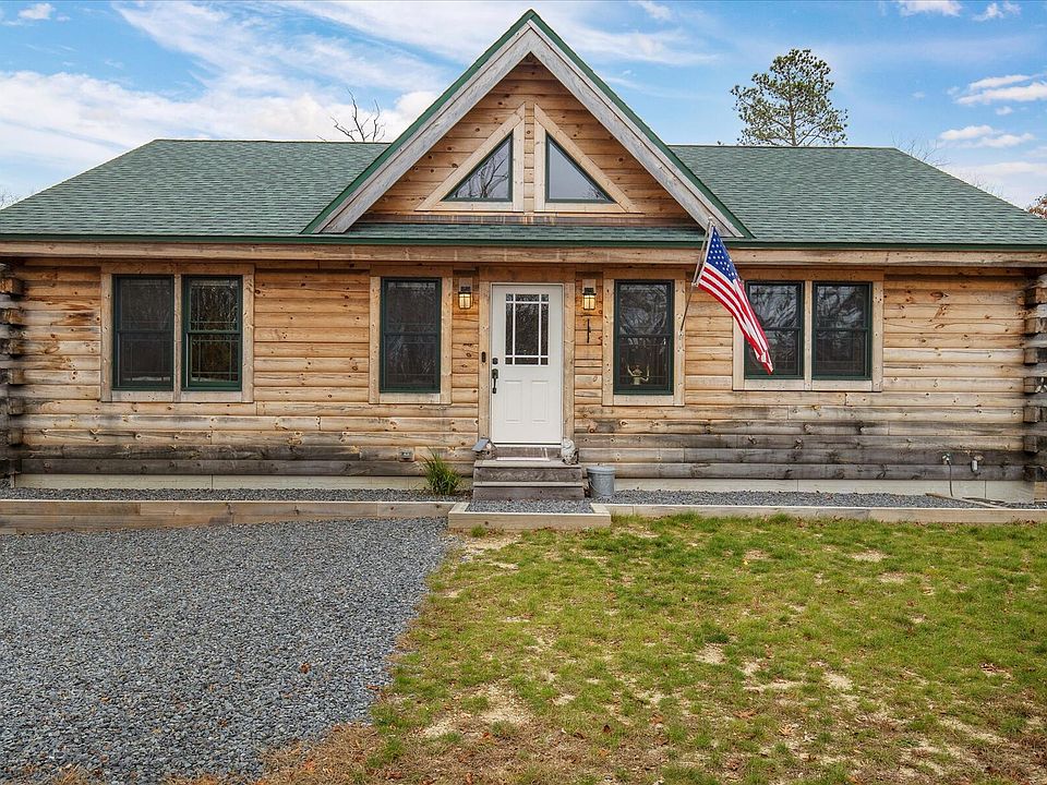 First-floor laundryClassic log homeEat-in kitchenSun-filled open-concept layoutGleaming hardwood floorsWalkout lower levelBeautiful elevated wooded lot