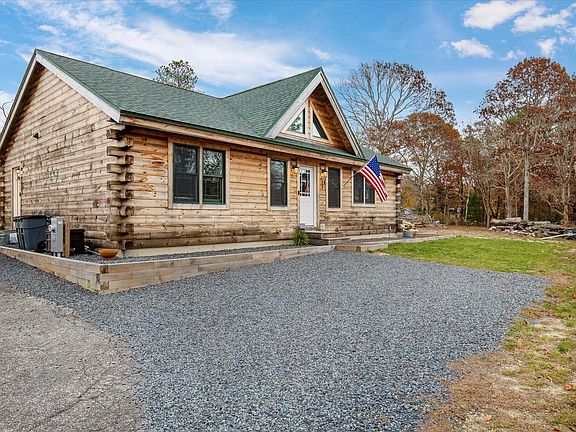 Welcome to 26 Collins Lane, where the warmth of a classic log home meets the ease of new construction. Privately situated on a beautiful, elevated wooded lot, this home offers privacy, nature, and convenience all in one. Set on nearly an acre and adjacent to conservation land, it delivers that true ''tucked-away retreat'' feel while still being minutes from Mashpee Commons, community gardens, parks, and more. Inside, you'll find a sun-filled open-concept layout with an eat-in kitchen, soaring natural wood ceilings, first-floor laundry, and a spacious nook perfect for an office. The main level features a private primary suite with a full bath, including double sinks, as well as a second bedroom and an additional full bathroom. The walkout lower level delivers incredible potential with plumbing in place for a third bathroom and two additional bedrooms ready to be finished to suit your style. Seller has permits in hand for a farmer's porch, in-ground pool, and a two-car garage, offering even more potential for future expansion. The heavy lifting has been done; just bring your final design touches. You won't want to miss the opportunity to view this one
