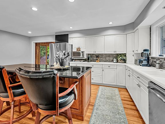 Why pay waterfront prices or taxes? This stunning Barkwood Falls home is ideally situated directly across from a private beach & dock on Lake Lillinonah. Nestled in a private setting among natural rock outcroppings, the home offers 3 bedrooms and 3.5 baths w/ a thoughtful, open layout perfect for entertaining. The remodeled kitchen boasts stainless steel appliances-including double wall ovens & an induction cooktop -w/ granite countertops, hardwood floors & loads of cabinet space. The family room impresses w/ soaring walls of windows, a dramatic fieldstone gas fireplace, wet bar w/ a commercial ice maker, & dining area. The main level also includes a flexible office or dining room, a cozy den, & a laundry room. The upper level features an expansive primary suite, a true retreat w/ two oversized walk-in closets (plus an additional closet), a luxurious bath w/ marble flooring, a granite dual sink countertop, two linen closets for loads of storage, & a roomy dual-head shower. Two additional bedrooms & remodeled bathrooms (one en-suite) complete the upper level.Enjoy lake living w/ easy access to the private sandy beach w/ picnic area, playground & boat launch just steps away. Dock slips are available via wait list @ $25/foot, kayak & canoe storage just $175 annually. The optional yearly association fee is only $200. The home features a three-bay garage for your cars & water toys & is also wired for a generator. All of this & just minutes from shopping, downtown and highways!