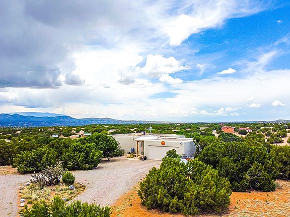 Native American legend says the Crazy Rabbit enjoys quiet, isolated contemplation. Near the 50 acre Alan Houser sculpture garden, displaying over 70 works, solitude is delivered in abundance. At the end of a private, gated driveway rests this 3 bedroom 2 bath, well maintained home, with expansive mountain and vista views. Whether enjoying the panorama from the light infused interior or on horseback in the arena, one can sense the deep history and cultural significance of the area. The 700 year old, nearby Burnt Corn Pueblo was purchased by the BLM opening public access to over 2,000 acres of public land. After recreation relax in the cool refrigerated home or find yourself sipping a cold drink under one of the covered portales. The entire home is tile floor making cleaning easy and the large 2 car garage has enough space to tackle projects large and small. Two walk in closets, full bathroom, and large entry room ensure you and your guests are comfortable. Perimeter and cross fencing with loafing sheds and turnouts make sure the four legged friends feel at home too. Near the historical villages of Cerrillos and Madrid with only a 20 minute drive to downtown Santa Fe, the area enjoys many restaurants, shops, and festivals but with peace and seclusion awaiting at home.