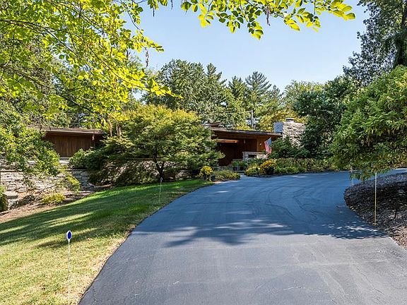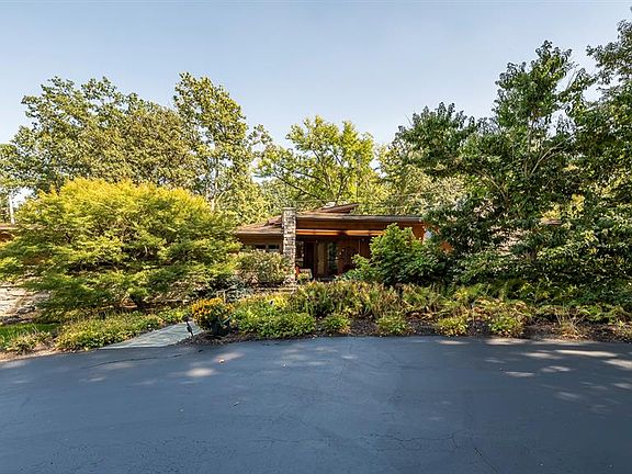 Mid-Century Modern Masterpiece in the Heart of Ladue. Designed by renowned architect Robert McMahon and built in 1955, this one-of-a-kind Mid-Century Modern gem sits on a serene and private 3/4-acre lot in one of Ladue's most sought-after locations. Tucked behind a circle driveway, this 2,792 sq ft home is a rare blend of timeless architectural detail and modern updates. Signature MCM elements about- floor-to-ceiling windows, natural stonework, warm wood finishes, cork and slate floors - all thoughtfully preserved and integrated throughout the home. The beautifully updated kitchen features a breakfast bar and premium appliances, including a Dacor electric cooktop, Gaggenau gas cooktop, Bosch dishwasher & convection oven, and Sub-Zero refrigerator. The home offers generous living spaces: a bright dining room, large living room with fireplace, cozy family room with wet bar, and a stunning 3-season room that brings the outdoors in. Two fireplaces, two patios, a walk-in cedar closet, main floor laundry, and a covered front porch with a tranquil water feature elevate the living experience. With a spacious two-car garage, this property is both functional and fabulous. Located minutes from Clayton, Plaza Frontenac, Highway 40, and Ladue's top amenities, this is a rate opportunity to own a true Mid-Century treasure in an unbeatable location.
