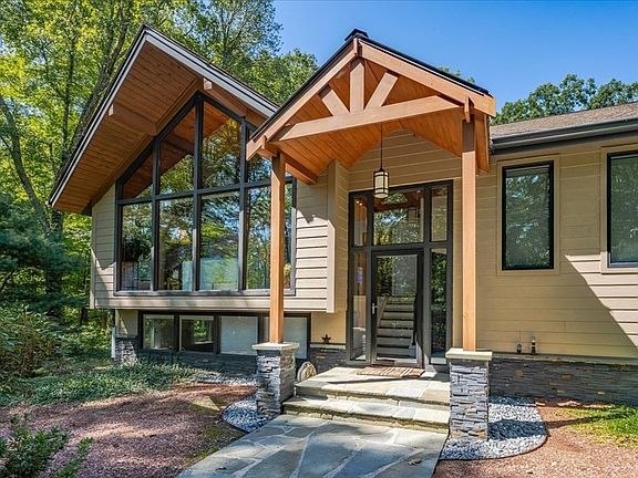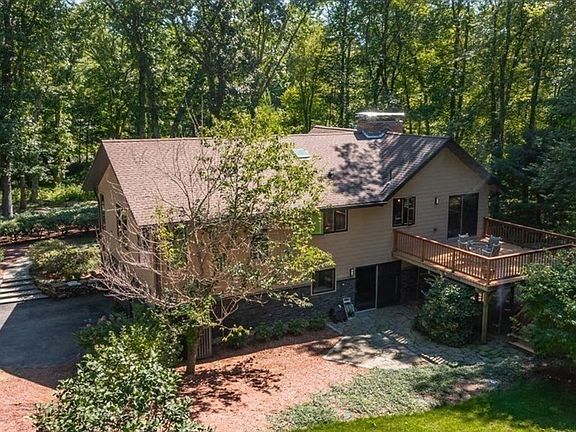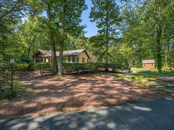 Privacy seekers and outdoor enthusiasts will love this sequestered contemporary set back on 4.4 wooded acres in a neighborhood setting convenient to shopping and commuting routes* Recent Andersen 400 Low E windows designed to capture an abundance of natural lighting that pours in from all directions*Dramatic foyer leads to the living room with beaded wood cathedral ceiling with an Aspen feel warmed by the Harmon pellet stove insert* Freshly stained and refinished gleaming hardwood floors throughout main level and painted interior* New 4 bedroom Title V system *Freestanding 12X18 cement pad*18X18 undermount composite deck with supports for a future porch* 10X12 lofted shed*Remodeled Primary bath with radiant floor and 3 output shower*California closet systems in all bedrooms, linen, and coat closets*Upgraded Andersen French wood sliders*Wired for Verizon FIOS* Hardie Cement siding and Stone veneer* Remodeled island kitchen with MAPLE cabinetry, quartz countertops. LED bulbs throughout.