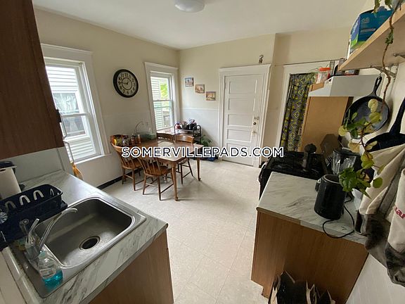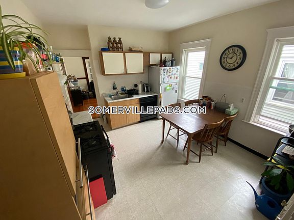 Stunning 3 bed 1 bath w/ Hardwood floors, good natural light Living room, big rooms Modern eat in kitchen Deck, in unit laundry, close to T, and more !