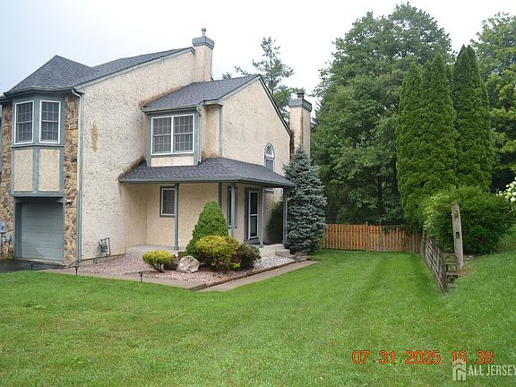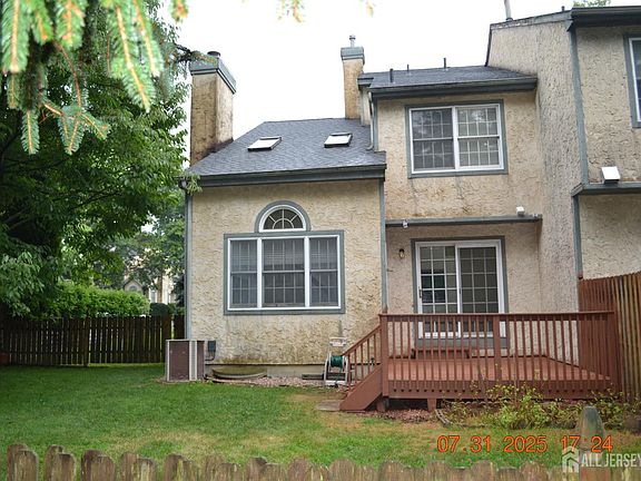 Stunning 3-Bedroom, 2.5-Bath Corner Townhome in Sought-After Kingswood Station! Welcome to this beautifully updated corner unit nestled in a quiet cul-de-sac within the desirable Kingswood Station community. This spacious townhome features a dramatic two-story family room with cathedral ceilings, skylights, and a wood-burning fireplace, creating an inviting and airy atmosphere. The home has been recently refreshed with brand new roof, new Quartz countertop, new vinyl flooring throughout and fresh paint, offering a modern and move-in-ready feel. Main Floor Highlights:Bright living and dining areas, Updated kitchen, Convenient laundry room and Powder room for guests Second Floor Features: Expansive primary suite with en-suite bath, Two additional bedrooms, Full hall bathroom. Finished Basement: Enjoy the bonus of a fully finished basement, perfect for a playroom, home office, gym, or additional living space. Plus, there's a dedicated utility room with ample storage keeping your home organized and clutter-free. Enjoy outdoor living in your fenced-in yard with deck perfect for pets, entertaining, or gardening. The home also includes a built-in one-car garage, driveway parking, and fee simple ownership with a low monthly HOA fee of just $72, covering access to community amenities like the swimming pool, tennis courts, and playground. Located close to NYC transportation, shopping, and the highly rated East Brunswick Blue Ribbon Schools. These homes rarely hit the market so don't miss your chance to own in Kingswood Station!