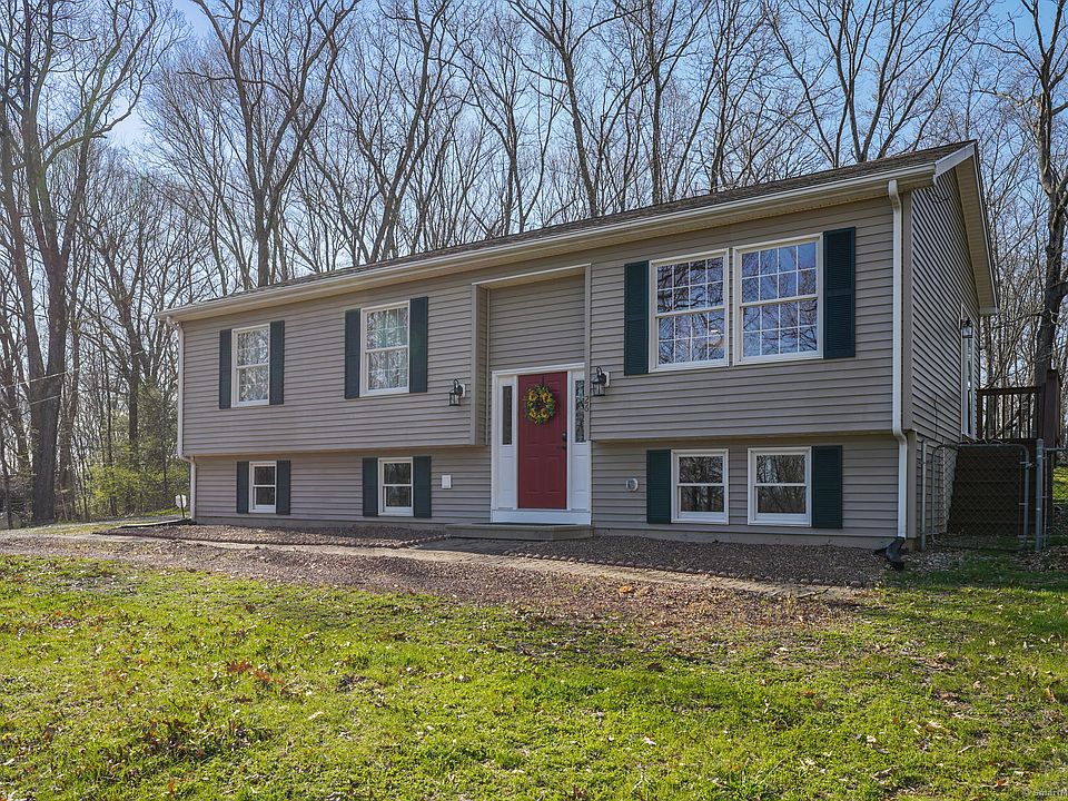 Welcome to your secluded retreat nestled away from the hustle and bustle of the city! This charming raised ranch offers a serene escape with its tranquil setting and seasonal lake views and it has been extensively remodeled within the last 3 years to include a new roof, boiler, septic system, insulation, septic and well tanks, and mini-splits. Located on a quiet, dead-end road, this 3-bedroom, 2-bathroom home offers 1700+ square feet of comfortable living space that includes gorgeous new hardwood floors throughout the whole main living level. The completely remodeled kitchen has granite countertops, stainless steel appliances and a center island for added storage-the ideal space for whipping up delicious meals. The adjacent living room and dining room make entertaining your friends and family a breeze! Steps away, you'll find three good sized bedrooms and an updated full bath. Downstairs, a cozy family room offers additional space for relaxation or entertainment, a full bath and laundry room. With beach rights included, you'll have access to the nearby lake where you can unwind, swim or simply take in the natural beauty. Conveniently located just 35 minutes from Hartford and 15 minutes from UCONN, this home offers the best of both worlds - peace and privacy combined with access to nearby amenities. Don't miss out on the opportunity to make this peaceful retreat your own slice of paradise. Schedule today and experience the beauty and tranquility this home has to offer. Home is also minutes from a fantastic local farmers market!