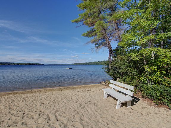 Features include: Open living area with a cozy stone fireplace and fully applianced cherry kitchen with eat up bar plus a formal dining room. Large wrap around deck and glassed in mudroom/porch to enjoy the lake views in every season. Second floor with a large primary bedroom with sweeping windows, a guest bedroom with skylights, updated full bath and convenient laundry. Finished lower level with 2 additional bedrooms and a full bath. Enjoy +/-1500' of shared sandy beach just steps away for swimming, picnics and lakeside relaxation. The community offers pickleball, tennis, basketball and miles of walking trails across 86 private acres. A rare opportunity for lakeside living with resort style amenities on of Maine's most desirable lakes!
