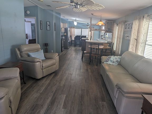 Located in an Active 55+ community! Be sure you put this special offering on your list of homes to see. The price is right and the features are wonderful. Vinyl laminate flooring throughout most of the home. Roof is only 2 years old ! Home air conditioner is one year old. Water heater is new ! Home comes fully furnished (Turn Key) !! Golf cart is included with the sale !! Doesn t get much better than all that is being offered. Don t miss out on this opportunity. Someone is going to be the lucky new owner !!